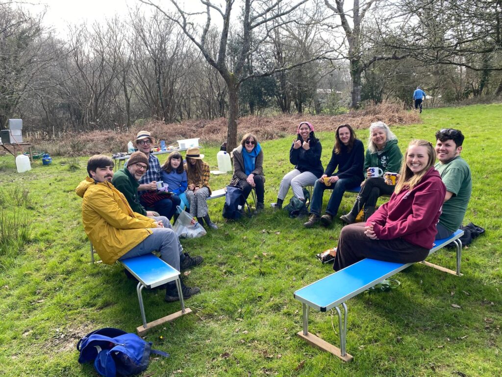 A band of volunteers met at Scarletts last Sunday to begin planting trees – more than 200 were planted in addition to clearing brambles and rubbish, creating a dead hedge, planning the site for a pond and rigging some suspension ropes for a parachute. Just another 105 trees to plant on the 12th April.