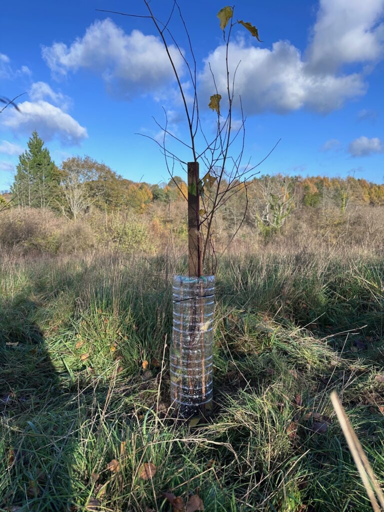 You’ll notice the DIY solution to protecting the tree – we followed the advice from the Woodland Trust. We’re planning to plant a few hundred trees in the spring, so please hang on to any 2L plastic bottles you have.