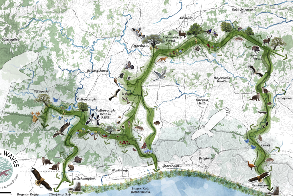 Scarletts is now part of ‘Weald to Waves‘, a wildlife corridor that runs from Ashdown Forest in the High Weald through the Low Weald and via the chalklands of the South Downs National Park, and along our major rivers to the Sussex coast where there are significant efforts being made to restore the kelp forests on the sea floor. This route connects the Weald to the waves.